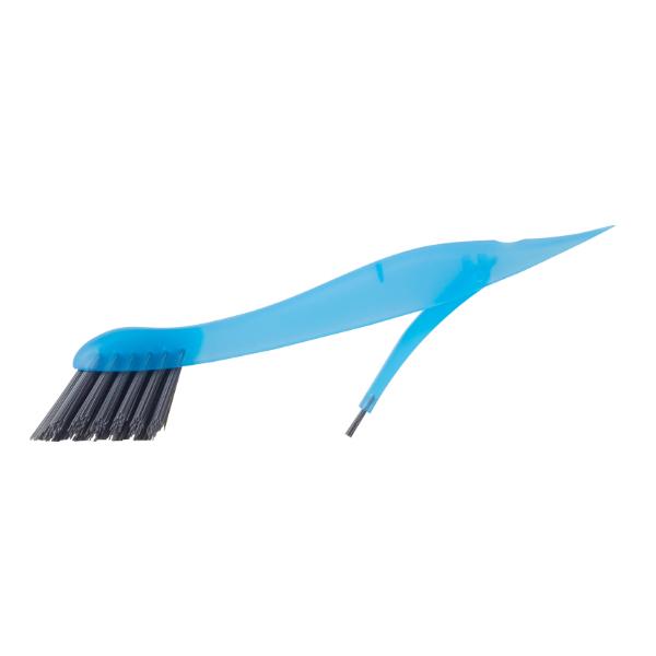 2つのブラシとスクレーパーで、蛇口・サッシ・弁当箱の溝など、複雑な形や細かい場所の汚れをすみずみまで落とします。