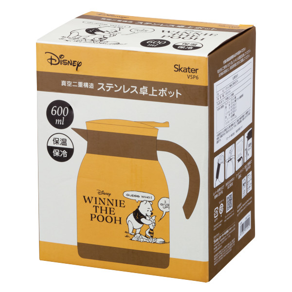 卓上ポット 600ml くまのプーさん ポット ティーポット ステンレス キャラクター ( ステンレスポット テーブルポット 魔法瓶 ディズニー プーさん 保温ポット 保冷ポット 洗いやすい コードレス ステンレス製 )