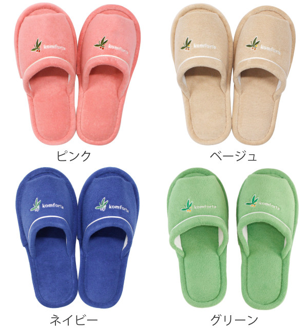 「コムフォルタ5」とは、心地よいという意味を持つ名前でトイレ空間をさわやかにするトイレシリーズです。思わず触りたくなるほどのふわっとやわらかなはだざわりのトイレスリッパです。タオル地素材なのでふんわりとした肌触りの良さを感じていただけます。今までのスリッパよりも少し大きめなサイジングで、男女ともに使うトイレ空間用のスリッパとして活躍できるアイテムです。甲が高めなつくりなのでゆったりとしたお部屋履き用としてもおすすめです。