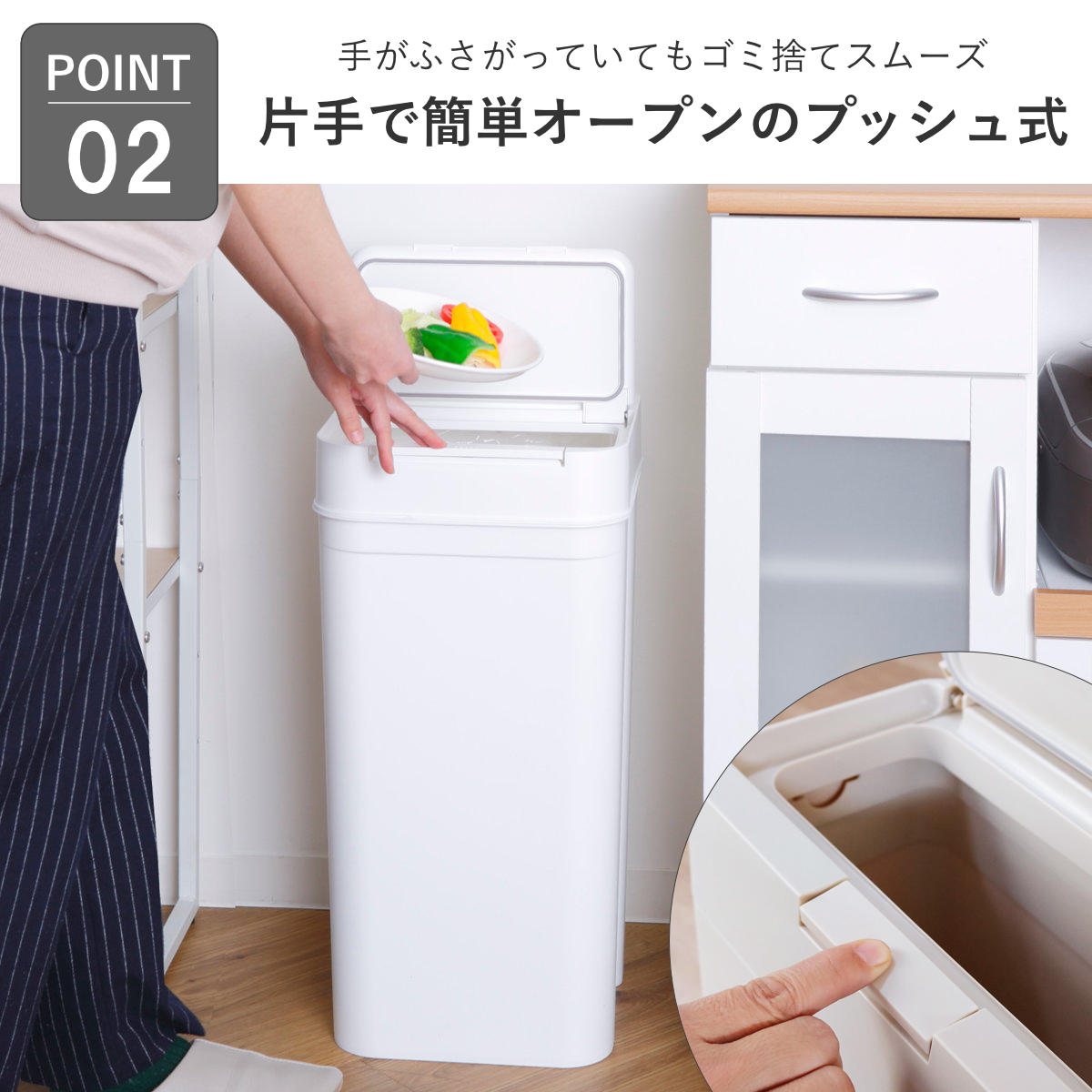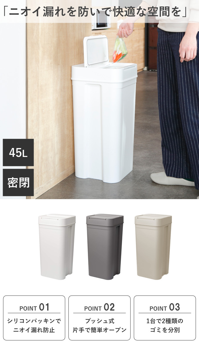 ゴミ箱 45L シールズ 密閉 ( ごみ箱 45リットル 幅31.5 ニオイ 防止 分別 プッシュ ふた 角型 キッチン スリム 防臭 ふた付き パッキン 袋 見えない 棚下 カウンター ラック 下 生ゴミ おむつ シンプル ) 【ホワイト】