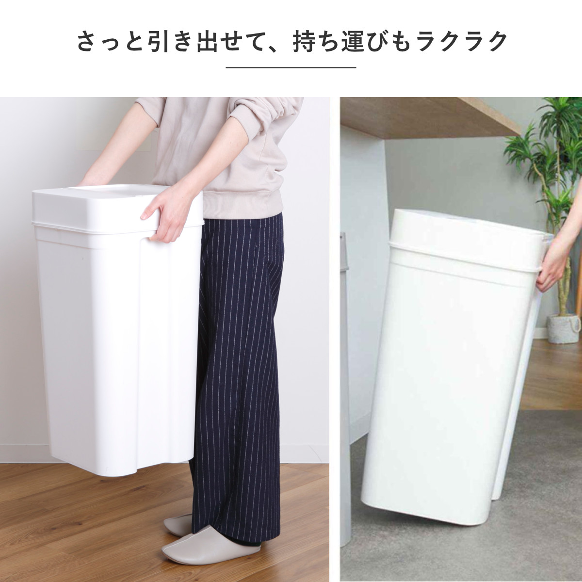 本体に対に入った窪みは、棚下から引き出したり持ち運びの際に取っ手として利用できます。ゴミ捨てやお掃除の際も負担が少なく、使い勝手のよさも魅力です。