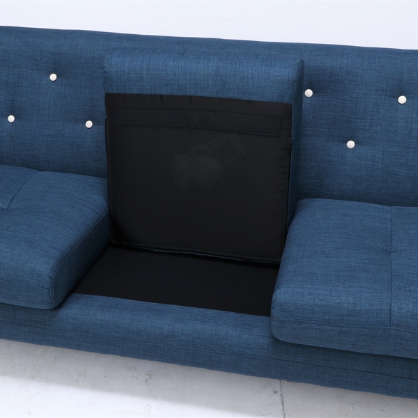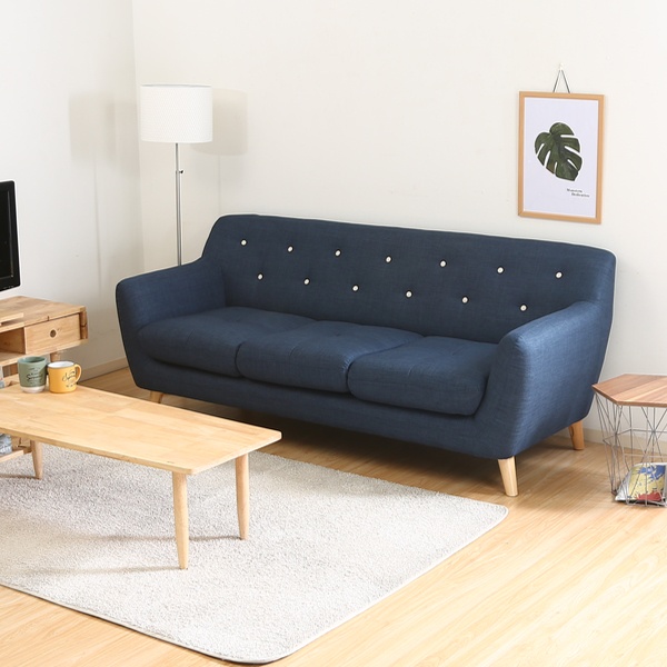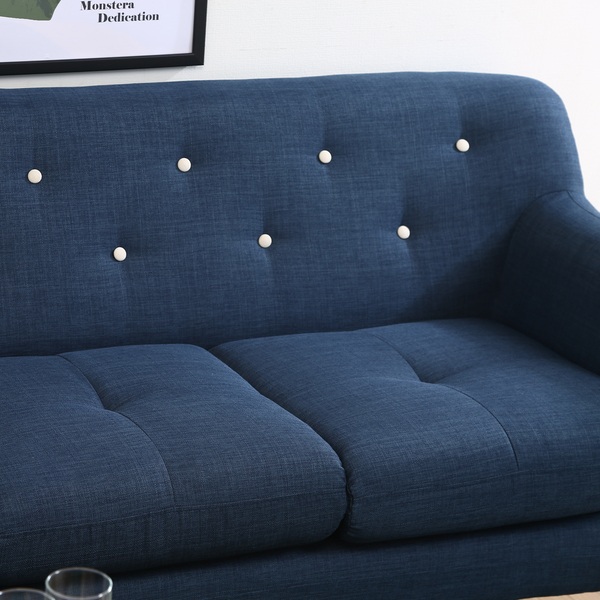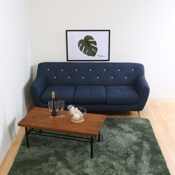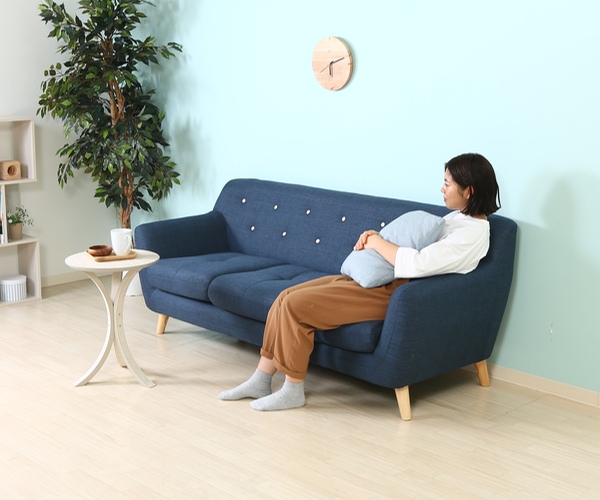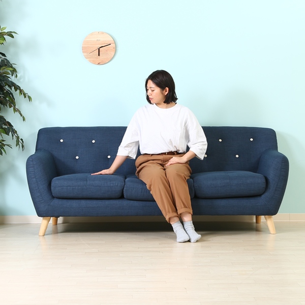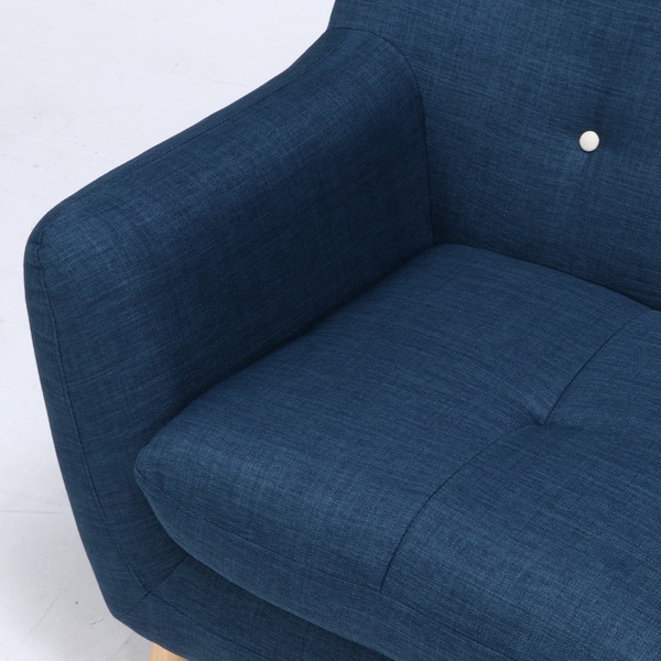 知的で洗練されたネイビーカラーが使用された、上品な雰囲気の大人デザインソファです。ホワイトの飾りボタンがさり気ない可愛さを演出しています。