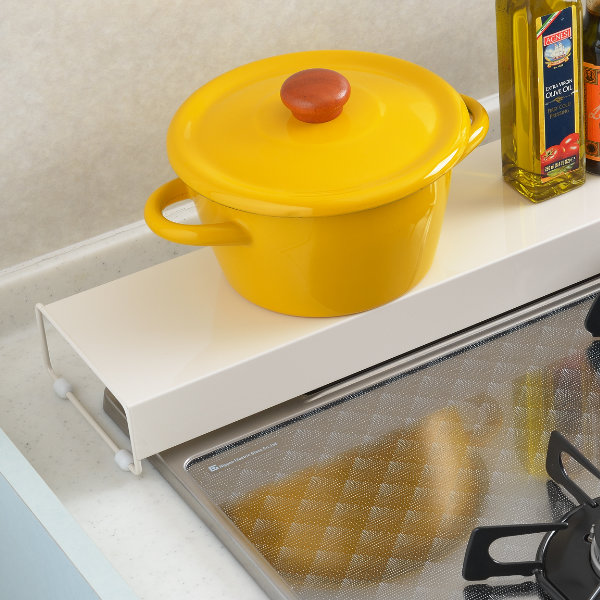 調味料や鍋などを置いてラックとしても使えます。インテリアに合わせやすいアイボリーです。