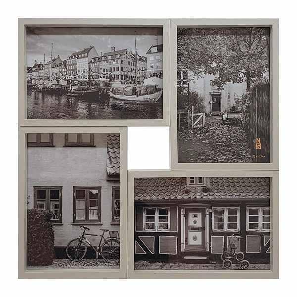 フォトフレーム 4枚 多面 壁掛け 卓上 写真立て ( フォトスタンド 写真フレーム 写真たて 4面 置き掛け両用 フレーム 中台紙付き おしゃれ 壁 デスク 机 つくえ 棚 ディスプレイ ) 【 ウォッシュグレー 】