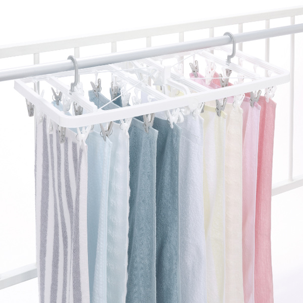 ●フレームの対向する位置に同じ色のピンチを配色しており、タオルなどの渡し干しがしやすいです。