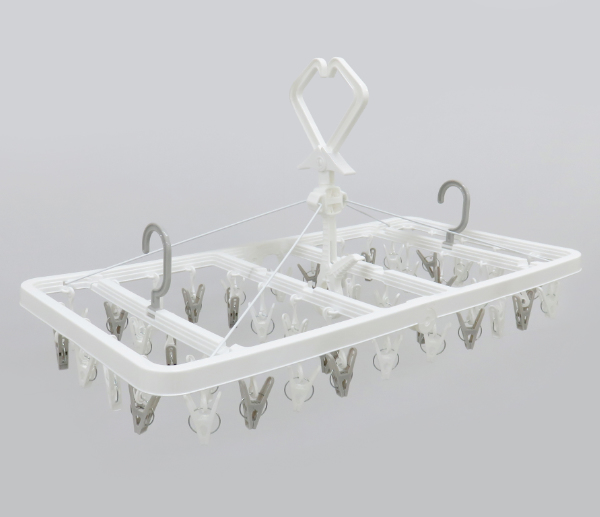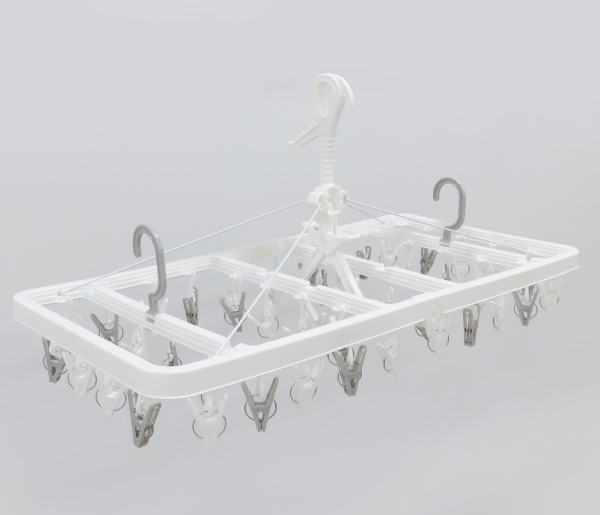 ●くるっと回転フックで3通りの干し方ができるピンチ42個付き角ハンガーです。