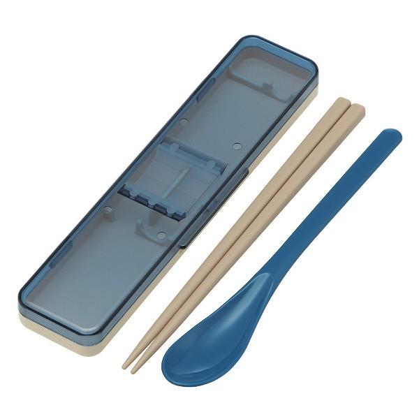 コンビセット 抗菌 箸 スプーン レトロフレンチ ( 食洗機対応 18cm お箸 カトラリー AG 銀 シンプル 日本製 食洗機OK 18センチ カトラリーセット 音の鳴らない 持ち運び お弁当 弁当 お弁当用 携帯用 )【 ネイビー 】
