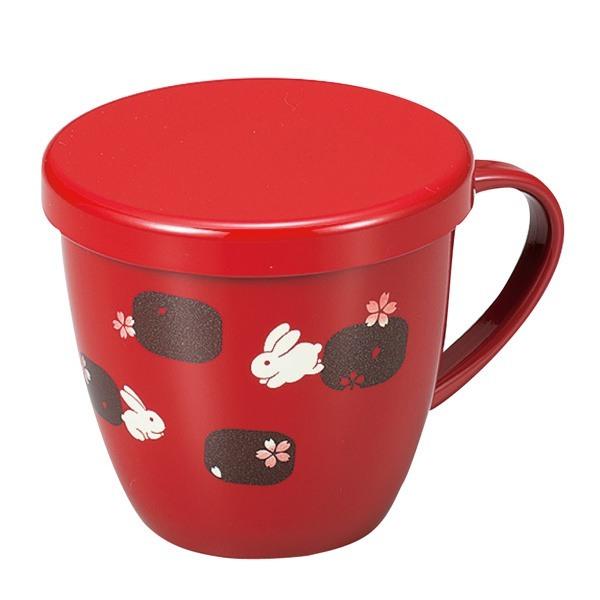 マグカップ 200ml ふた付き うさぎ 遊び コップ 食器 プラスチック 日本製 ( 食洗機対応 電子レンジ対応 マグ 蓋付き カップ 蓋付きマグカップ フタ付き 割れにくい 和食器 かわいい ) 【 朱 】