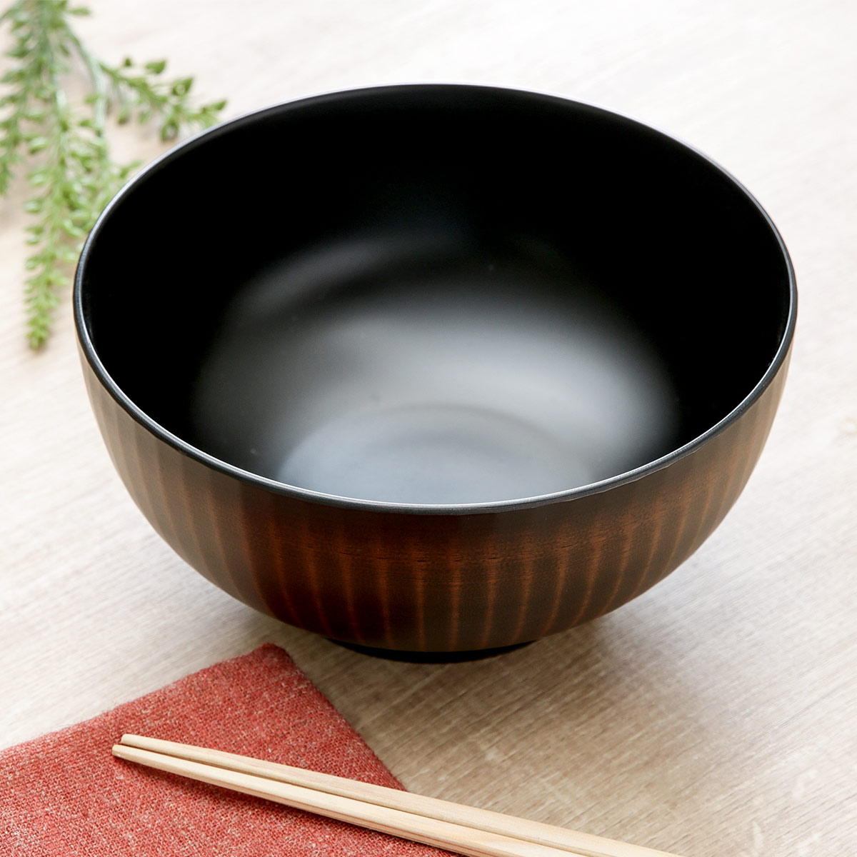 使い勝手抜群で毎日気軽に使えるワンズシリーズ。栃木目やひのきの木製風が美しく、落ち着いたデザインが魅力です。樹脂製なので軽くて割れにくく、お手入れも簡単で毎日使いに最適です。汁椀から麺鉢まで用途に合わせて選べるサイズ展開なので、ご家族分を揃えておいても便利です。