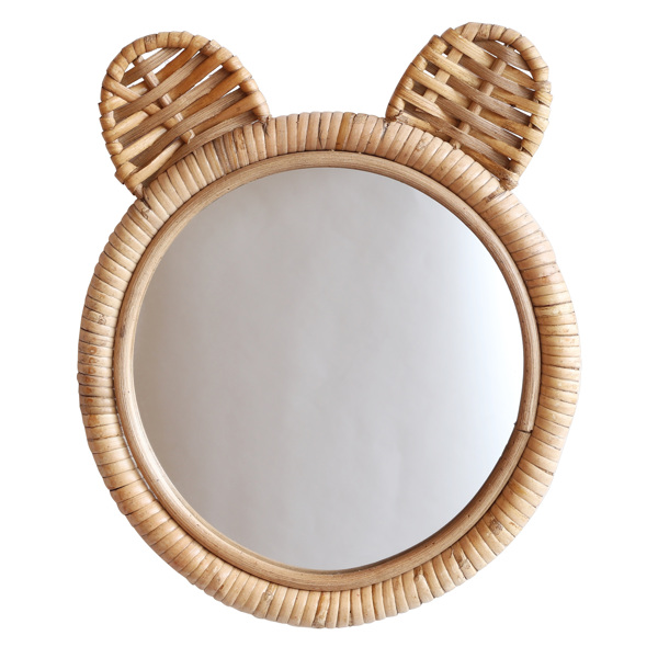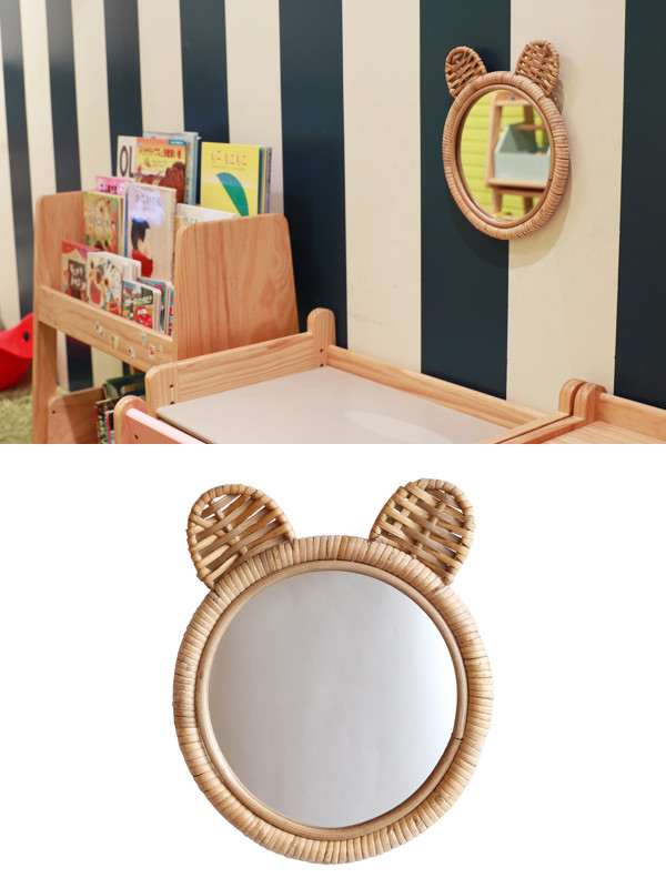 ラタンで熊の形をかたどった、子供部屋にピッタリな可愛いミラーです。写った自分に耳が生えてきたように見えて、お子様の身支度も楽しくなること間違いなし!