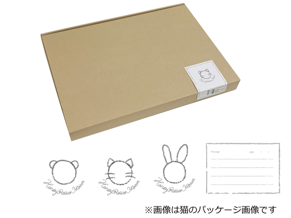 パッケージがシンプルで、それぞれの動物のかわいいイラスト入りです。メッセージカードが付いているので、プレゼントとしてもおすすめです。