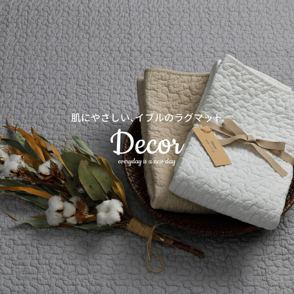 ラグ 60×100cm ラグマット デコール キルトラグ ( ベビーマット カーペット 絨毯 マット 綿100% コットン 赤ちゃん ベビー 子ども オールシーズン 洗える キルト 滑り止め付き 床暖 ホットカーペット 対応 ) 【アイボリー】