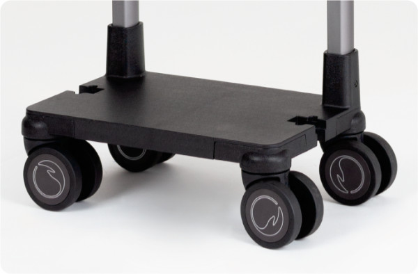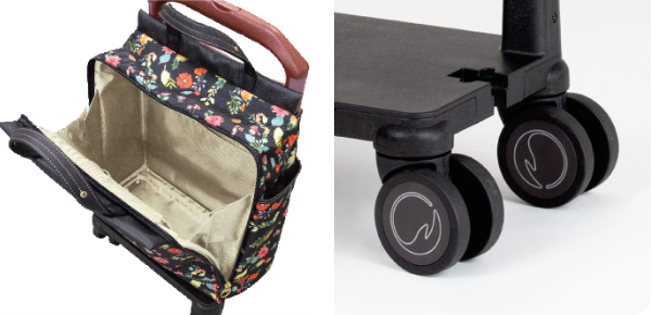 キャスターの取り付け位置が外側になっているので、カートの重心が安定します。歩行中にも横転しにくいように工夫されており、安心してご利用いただけます。