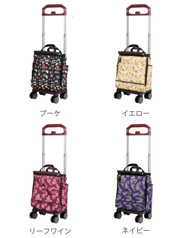 ショッピングカート 12L おしゃれ 軽い 4輪 大容量 サイドカート ( キャリーバッグ お買い物カート ショッピングキャリー 高さ調節 キャリー 便利 買い物 ショッピング カート ) 【 リーフワイン 】