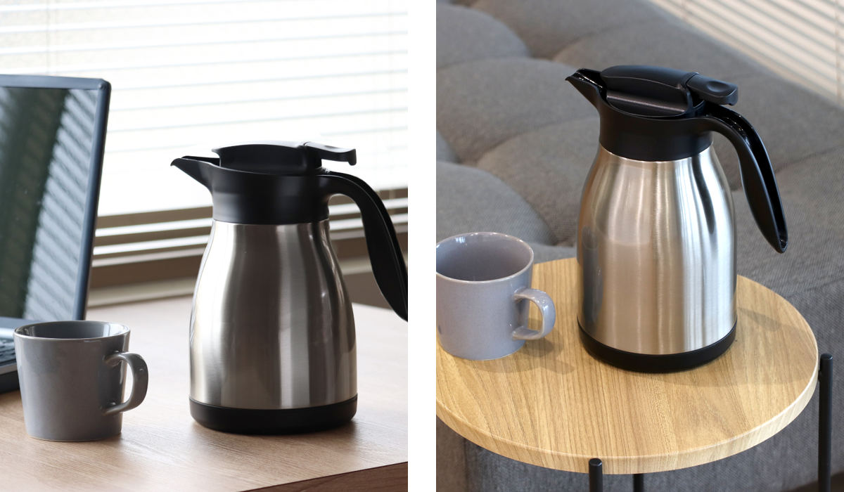 軽量でありながら丈夫なステンレス製のポットは、ご自宅はもちろん、オフィスやキャンプでのアウトドアなど屋内外の幅広いシーンで活躍します。