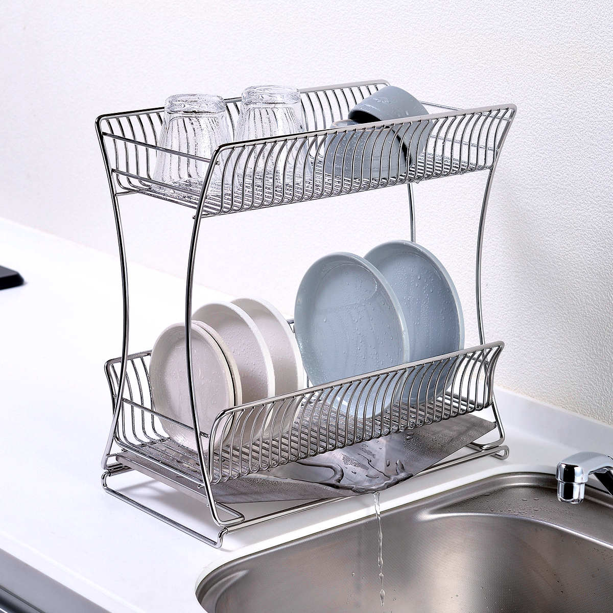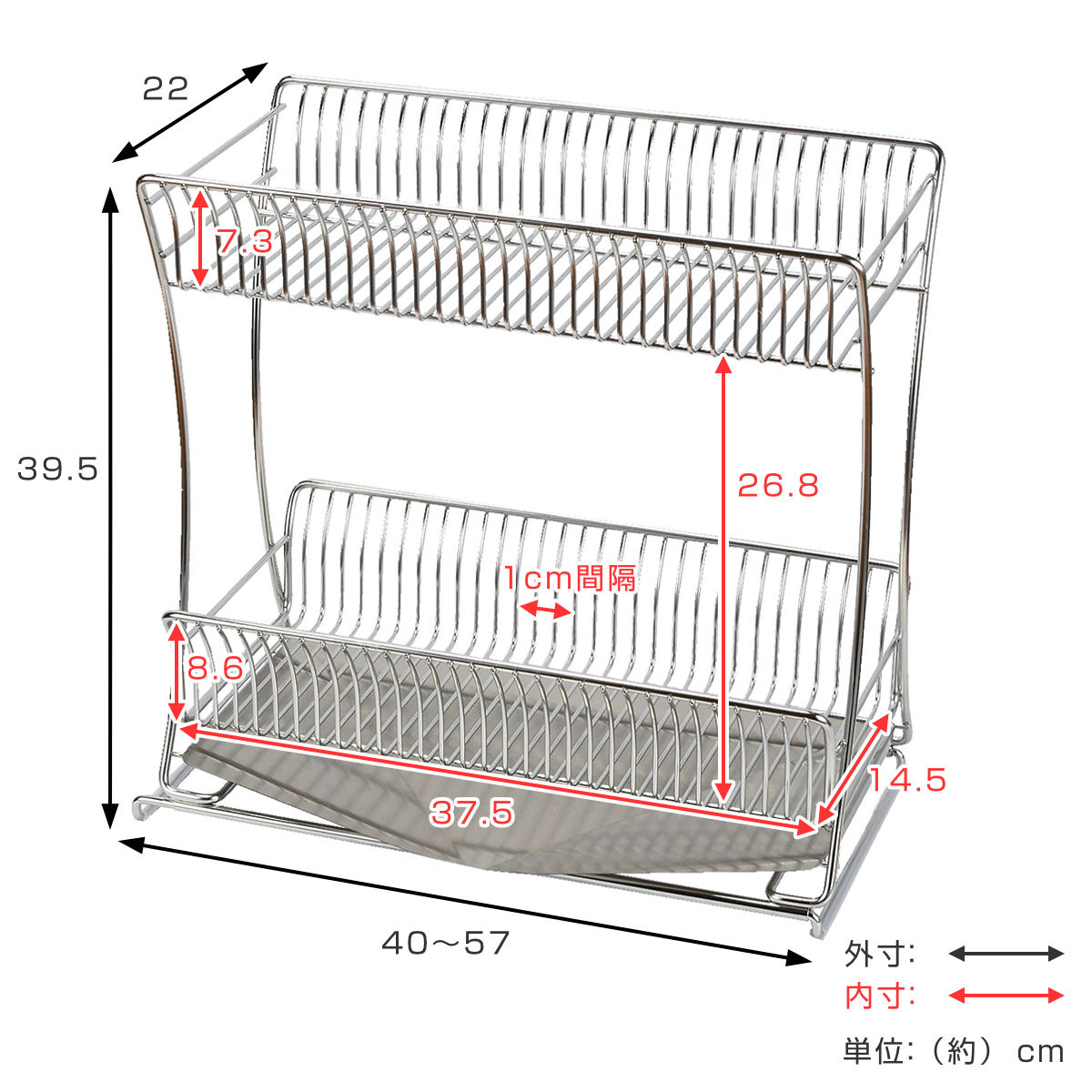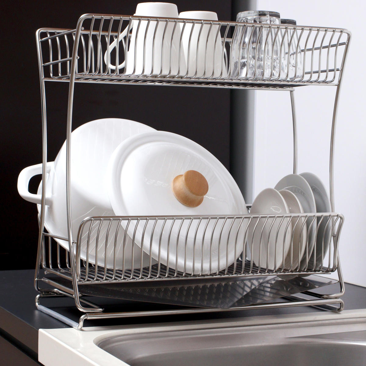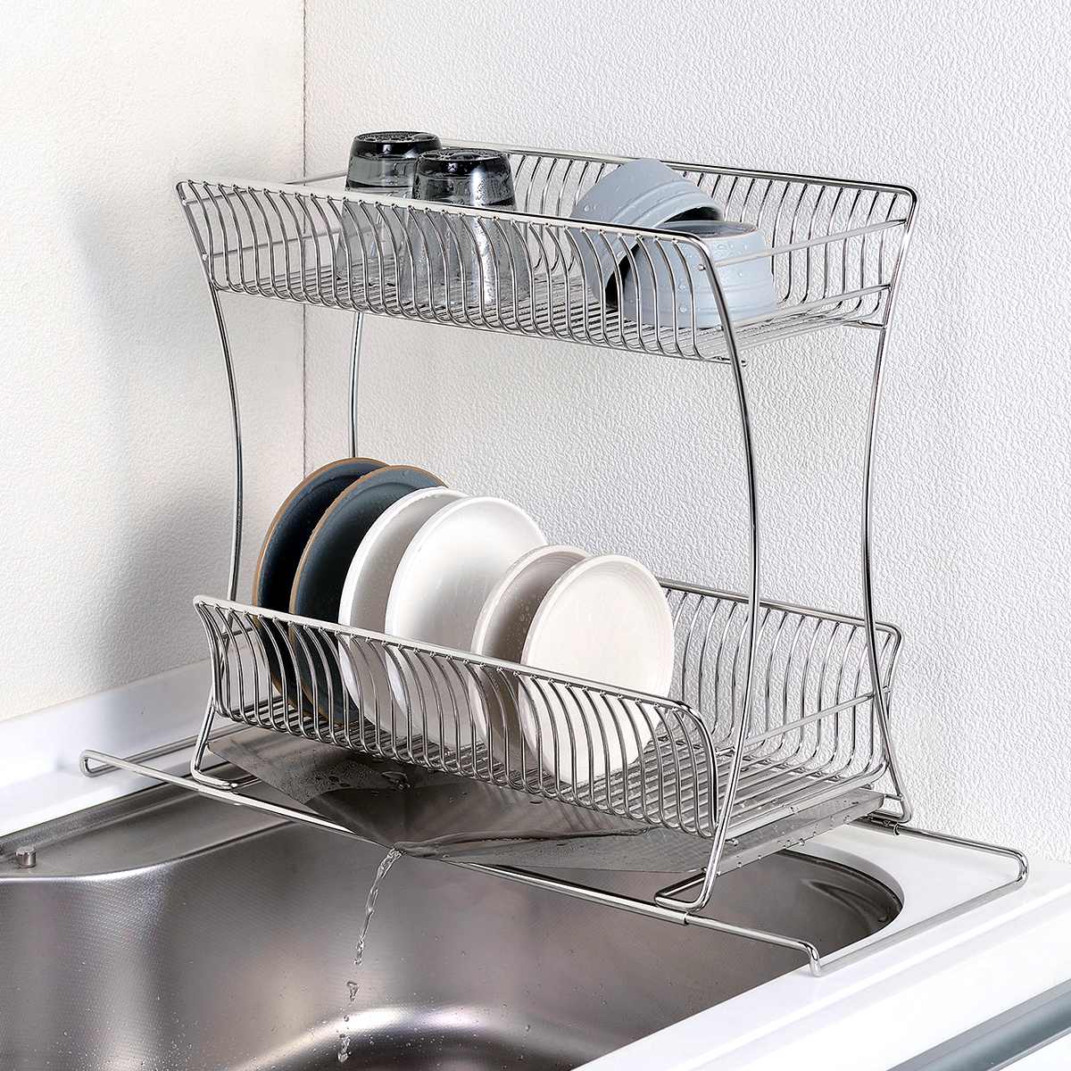 水切りかご 18-8 ステンレス製 水切りラック 2段 スリム サスティナ ( 水切りカゴ ディッシュラック 水切りバスケット 水切り 流れる オールステンレス 伸縮 トレー シンク上 シンク横 洗い物 食器洗い 乾燥 大容量 二段 おすすめ )