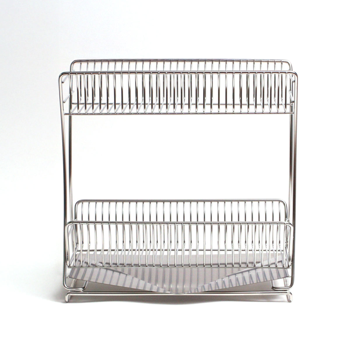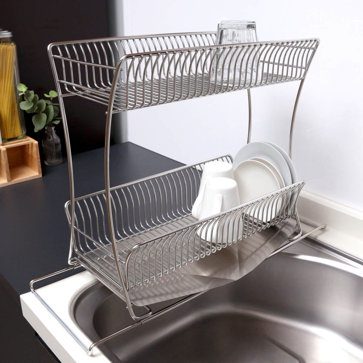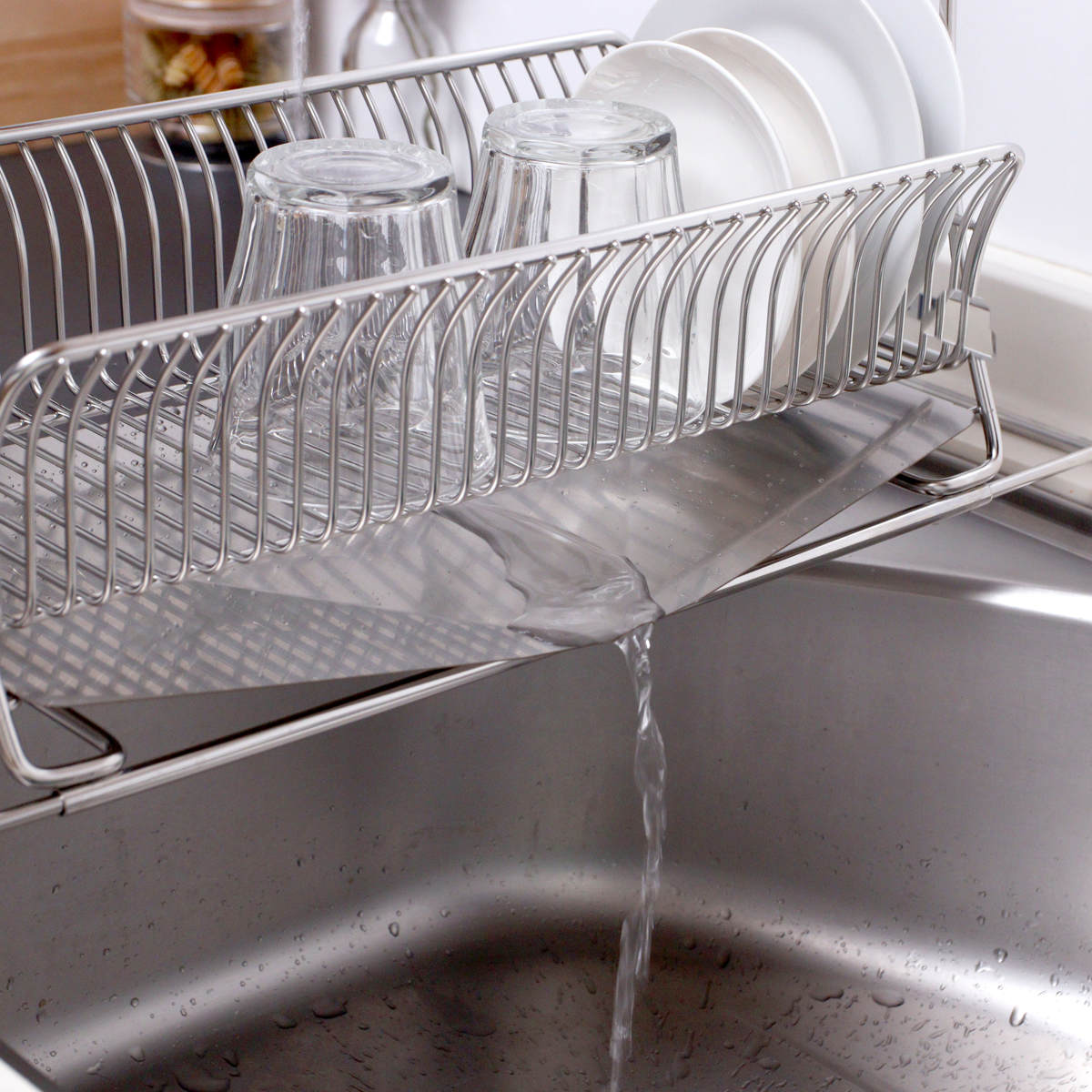 水切りかご 18-8 ステンレス製 水切りラック 2段 スリム サスティナ ( 水切りカゴ ディッシュラック 水切りバスケット 水切り 流れる オールステンレス 伸縮 トレー シンク上 シンク横 洗い物 食器洗い 乾燥 大容量 二段 おすすめ )