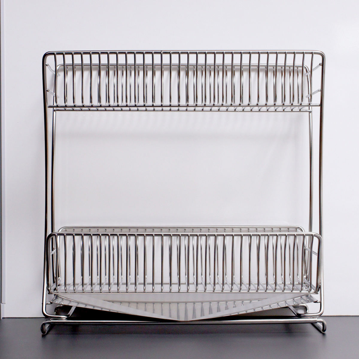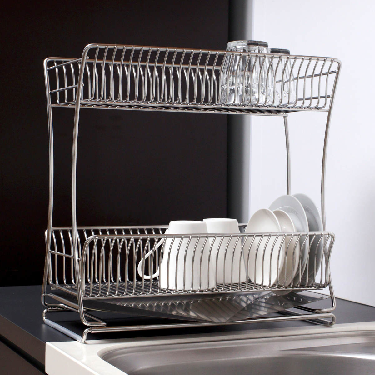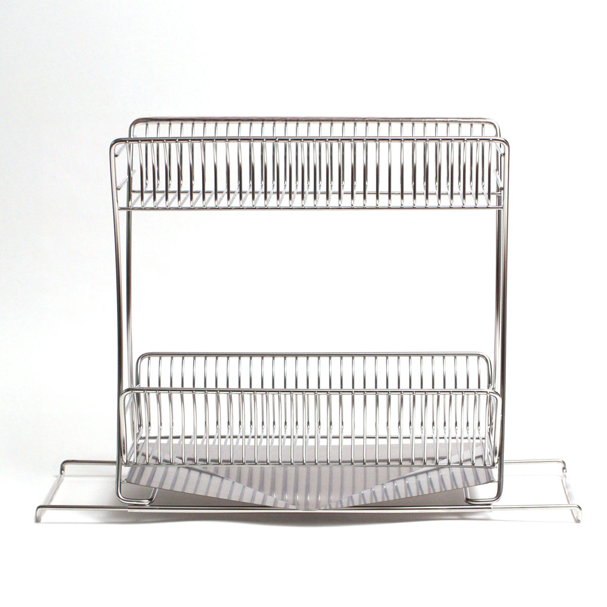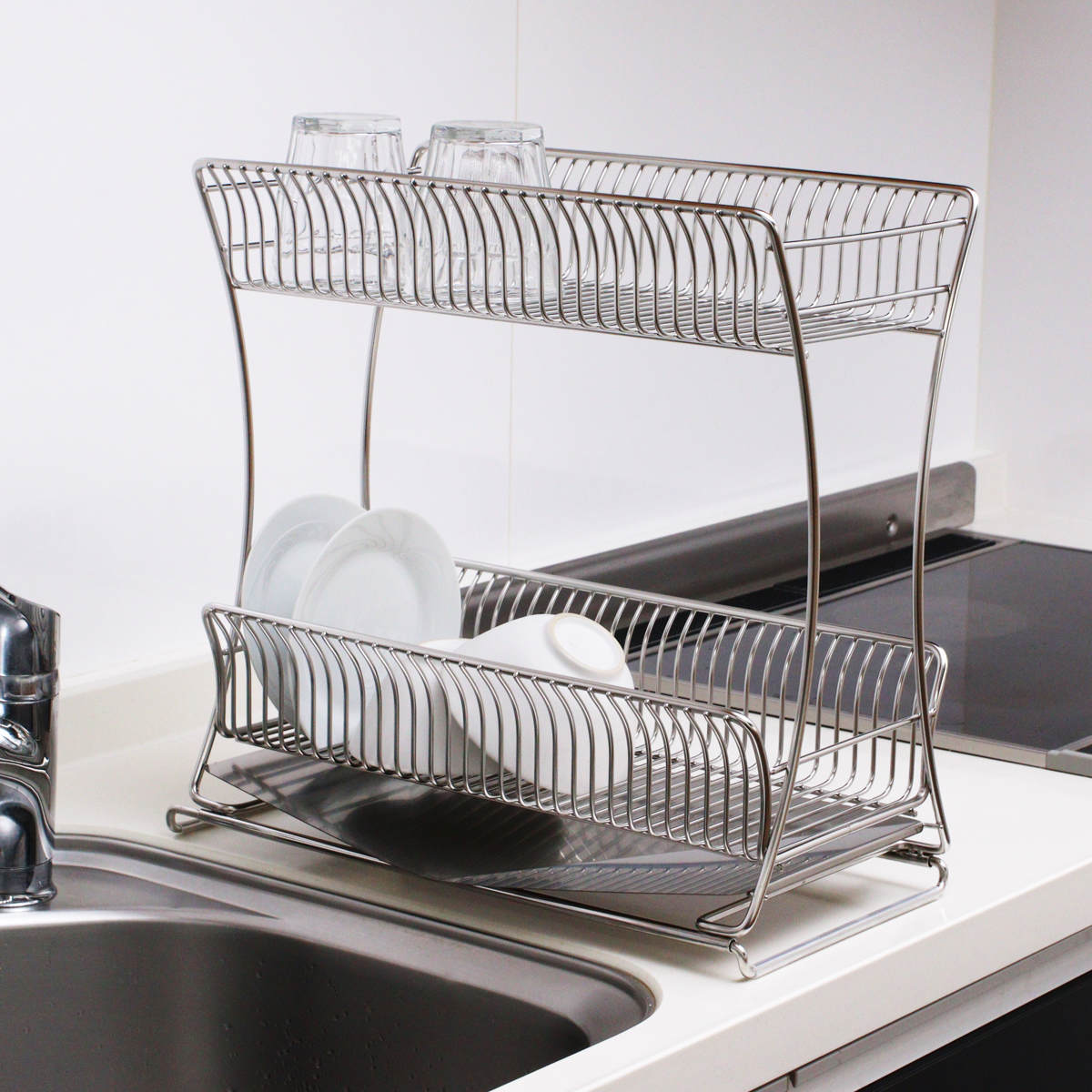 水切りかご 18-8 ステンレス製 水切りラック 2段 スリム サスティナ ( 水切りカゴ ディッシュラック 水切りバスケット 水切り 流れる オールステンレス 伸縮 トレー シンク上 シンク横 洗い物 食器洗い 乾燥 大容量 二段 おすすめ )