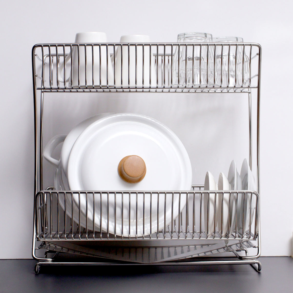 ゆるやかなカーブを描いた特殊な形状のワイヤーが、お皿のフチをしっかり支えてお皿が倒れにくいです。お皿を立てることで空気の通りが良くなり、乾きが速くなります。