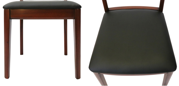 | 材質 | 主材:マホガニー 塗装:ポリウレタン塗装 座面張地:PVC(合成皮革) 座面クッション:合板、ウレタンフォーム |