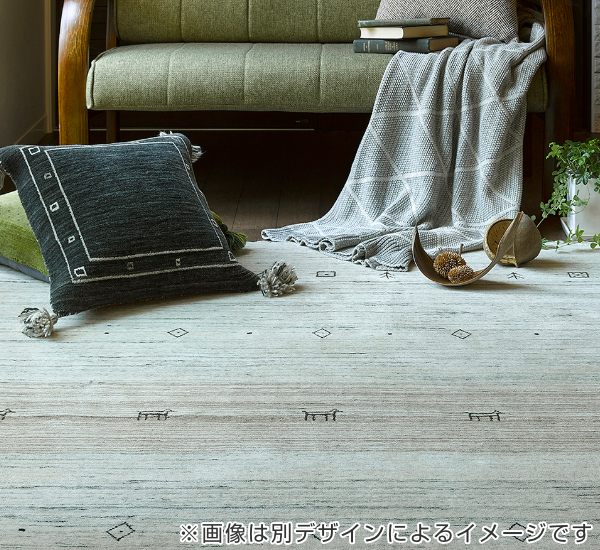 「ギャッベ」とは、イラン発祥の羊毛(ウール)を使った手織り絨毯です。とても細くやわらかくやさしいタッチ感が魅力のニュージーランドウールを100%使用し、貴重な手機織機によって丁寧に織り上げています。一枚一枚手作りなので、完全に同じものは世界に2つとありません。使用時間の経過とともに味わいが深まります。