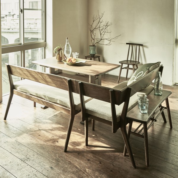 同シリーズのテーブルやベンチでコーディネートすれば、軽快なフォルムが心地よく過ごせる空間を演出してくれます。