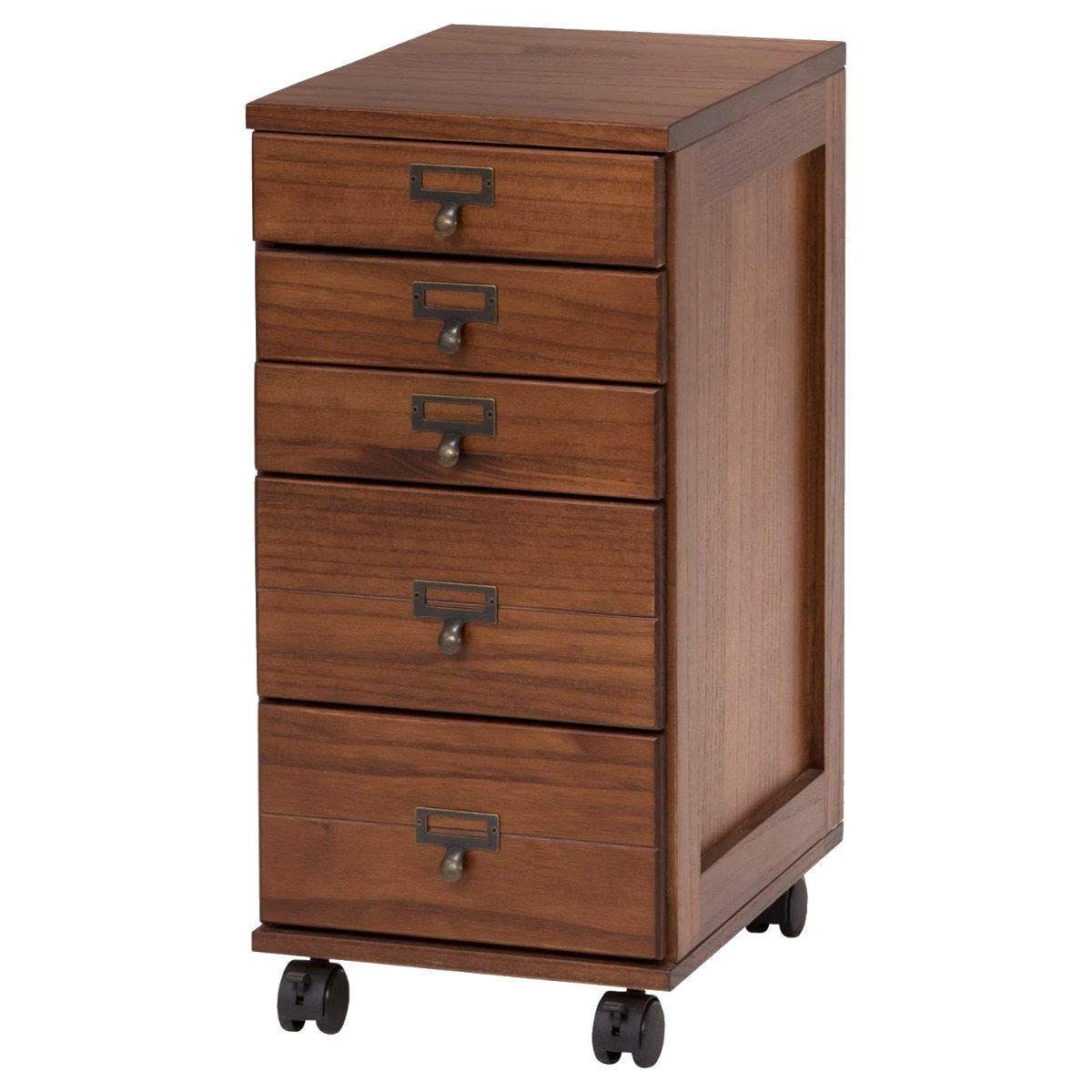 限られた空間にも置きやすい キャスター付きチェスト5段