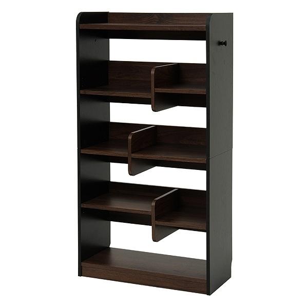 ディスプレイラック 4段 段違い棚 オープンラック 幅67cm ( 本棚 ラック シェルフ 飾り棚 ディスプレイ 薄型 収納ラック 収納 収納棚 間仕切り 木目 ナチュラル 北欧 シンプル 黒 白 ホワイト おしゃれ ) 【 ブラック 】
