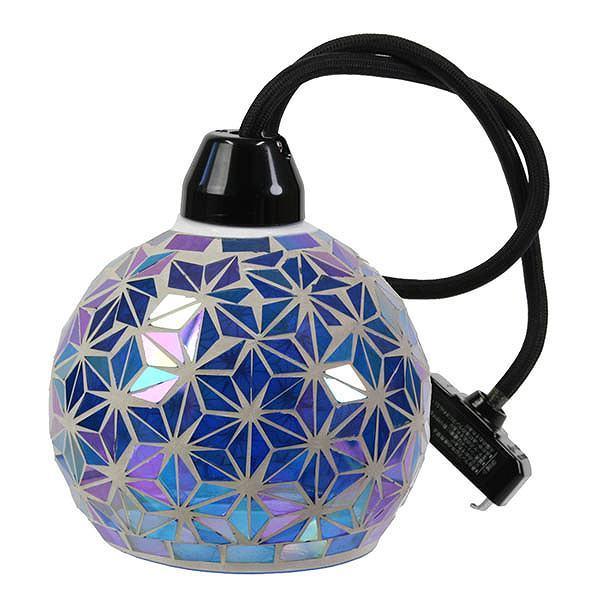 日本の伝統的な麻の葉模様がお部屋を彩ってくれる、白熱電球付きのペンダントライトです。モザイクガラスを通して、幻想的な灯りが壁や天井に映し出されます。お部屋の雰囲気を変え、うっとりするような異空間を演出します。
