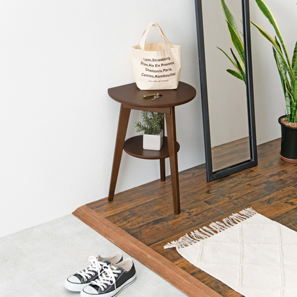 省スペースで設置できるので様々な場所で活躍します。リビングでソファの横に置いたり、ベッドサイドテーブルとして使ったり、玄関では鍵やカバンを置くスペースに使えます。お花や観葉植物を飾る花台としてもおすすめです。