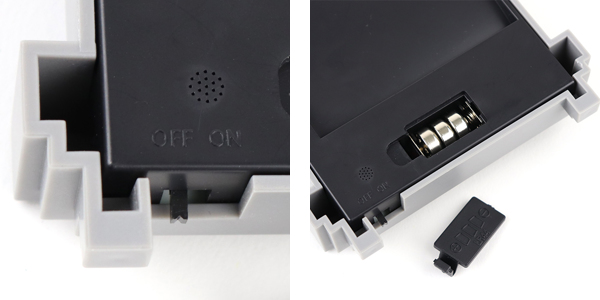 | ON/OFFスイッチ付き 本体下部にスイッチが付いています。OFFにした場合は音や振動で点灯しません。長期間使用しない場合などはスイッチをOFFにして保管してください。 | 電池式でコードレス 飾る場所を選ばない電池式です。ボタン電池(LR44)を3個使用します。 |