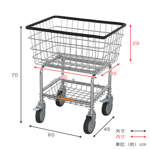 | サイズ | 約 幅60×奥行45×高さ70(cm) カゴ内寸:約幅60×奥行45×高さ29(cm) |
