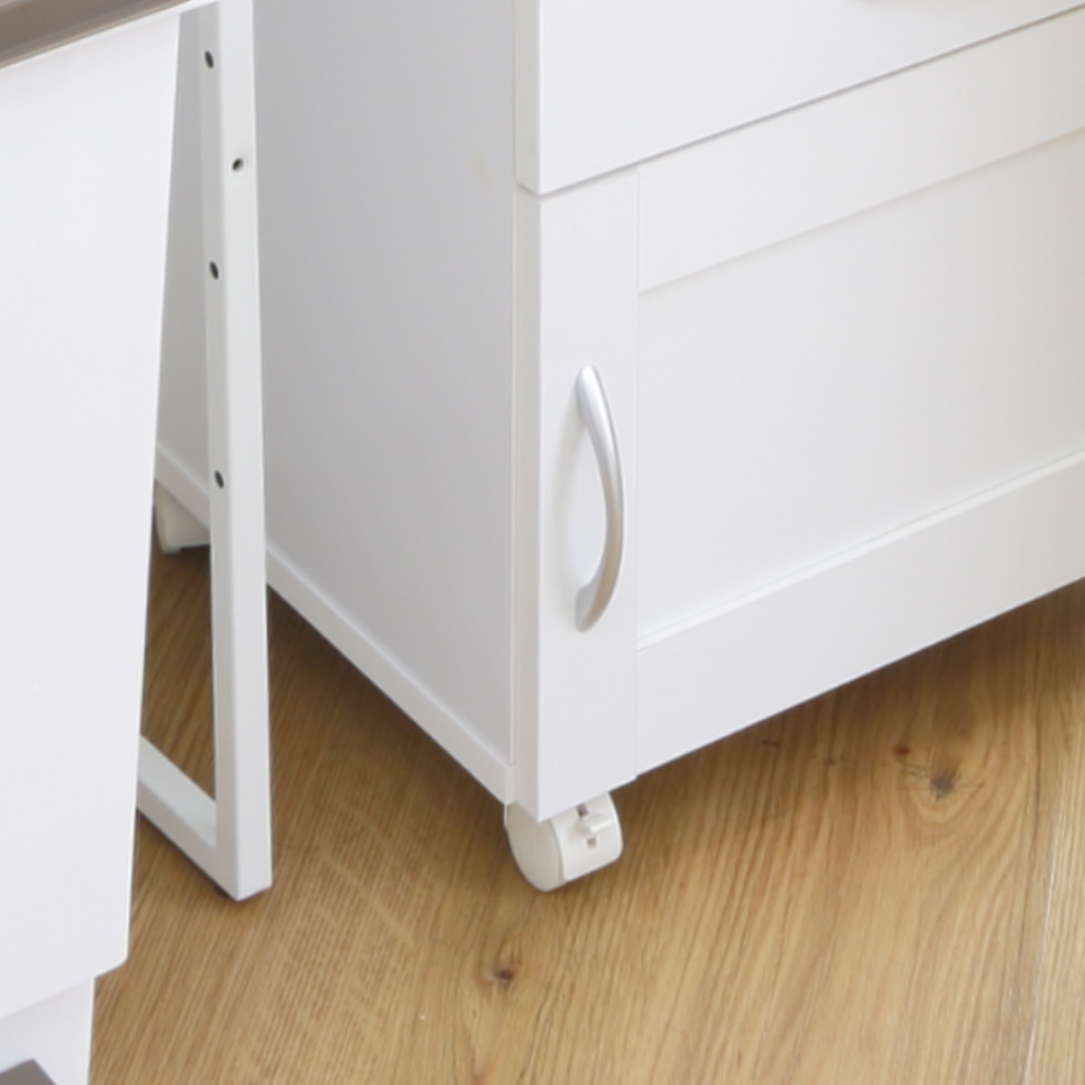 キャスター付きなので、模様替えやお掃除の際に動かしやすくて便利です。2個にはストッパーが付いているので、動かさない時には固定しておけます。