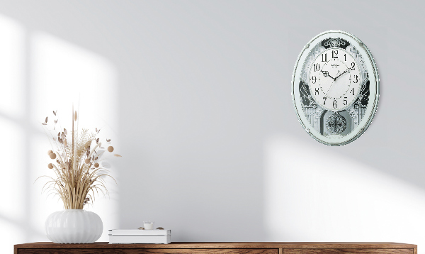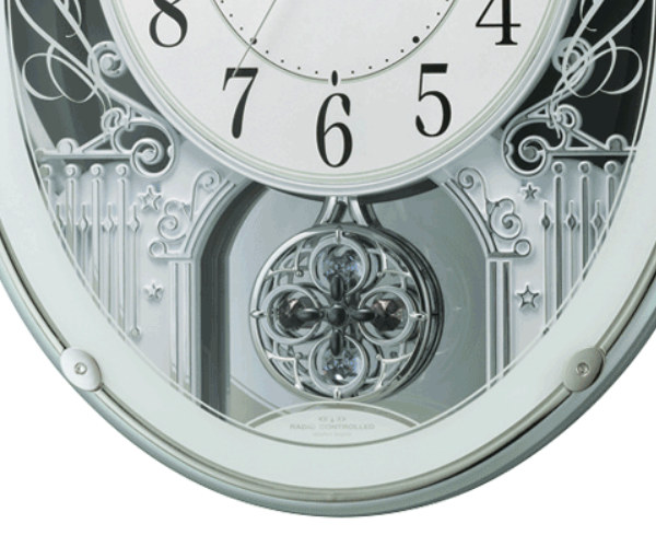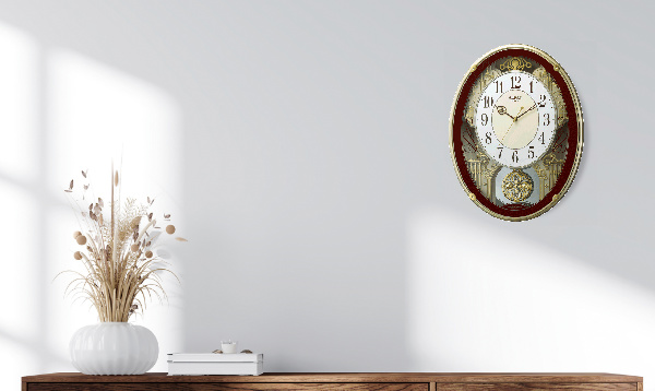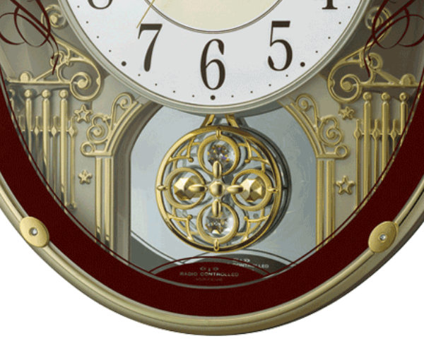 ゆったりと動く振り子は見ているだけで不思議と心がなごみます。時刻を自動修正する電波式で、ずれや遅れのない正確な時を振り子のやさしい動きとともにお知らせします。