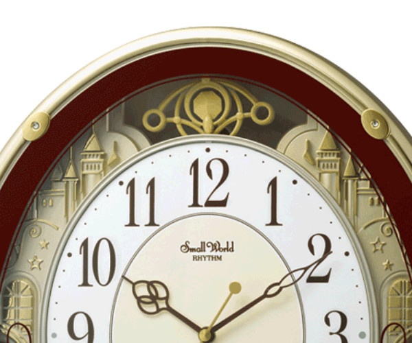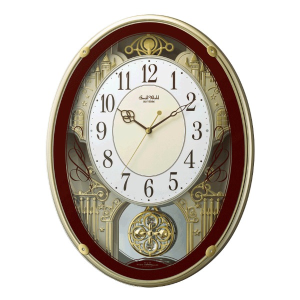 振り子時計 スモールワールドプラウド 18曲収録 電波時計 アミュージング時計 ( 掛時計 壁掛け 時計 メロディー おしゃれ 電波 RHYTHM 壁掛け時計 アナログ インテリア 雑貨 掛け時計 クロック とけい ウォールクロック ) 【ブラウン】