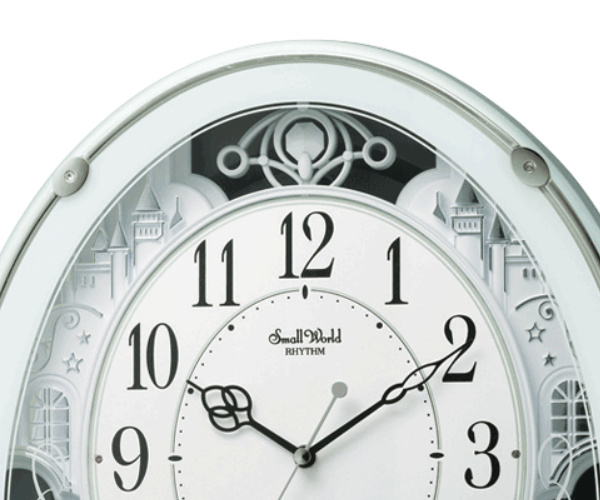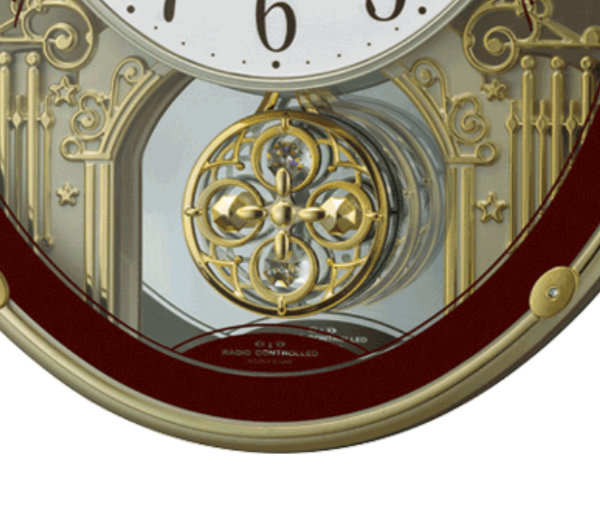 お城をイメージしたデザインが施され、奥行と華やかさを演出しています。クリスタル付きの振り子が美しく、インテリアとしても空間に彩りを与えてくれます。