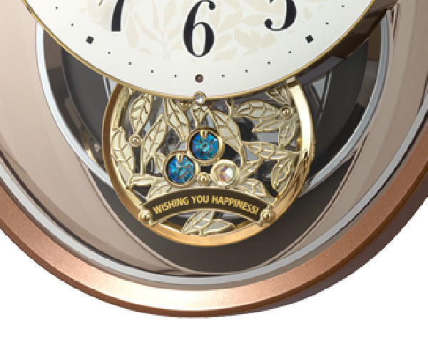 文字盤や振り子に植物柄を用いた大人なデザイン、洗練された佇まいがゆったりとした穏やかな時を彩ります。クリスタル付きの振り子が美しく、インテリアとしても空間に彩りを与えてくれます。