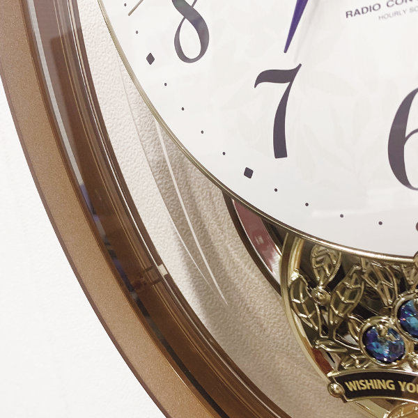 ゆったりと動く振り子は見ているだけで不思議と心がなごみます。時刻を自動修正する電波式で、ずれや遅れのない正確な時を振り子のやさしい動きとともにお知らせします。