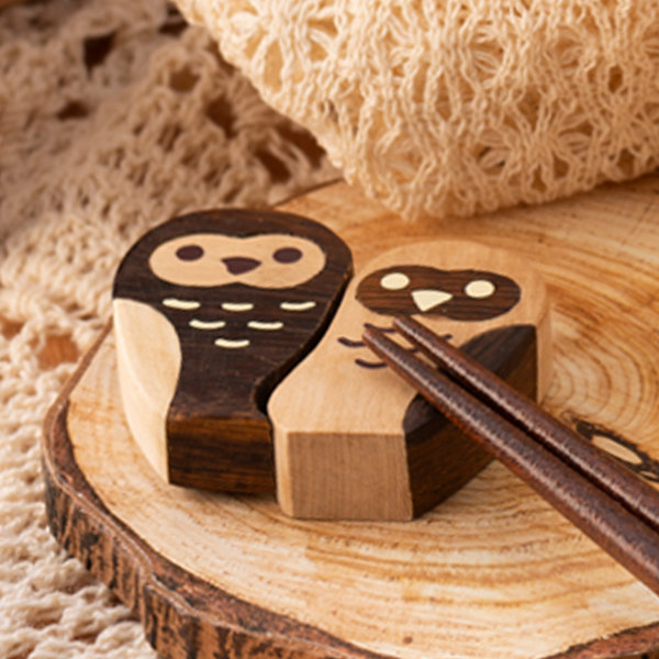 ●2羽のフクロウがペアになった、木製の箸置きです。