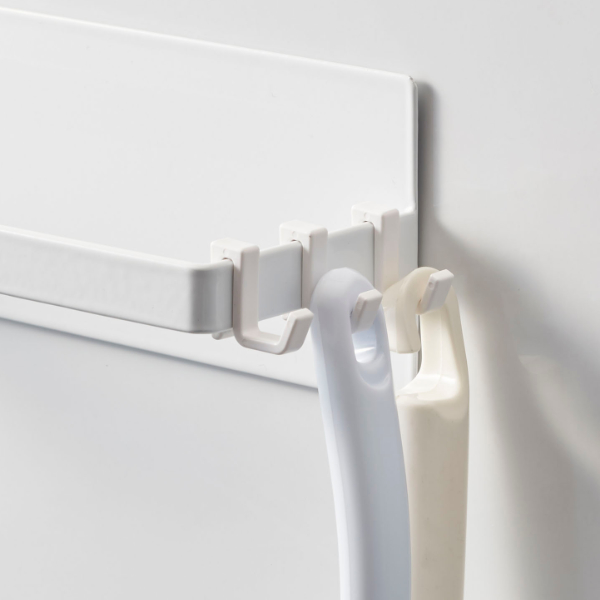 フックも3個ついており、横向き使用時にはブラシやピンチハンガーの収納にも便利です。