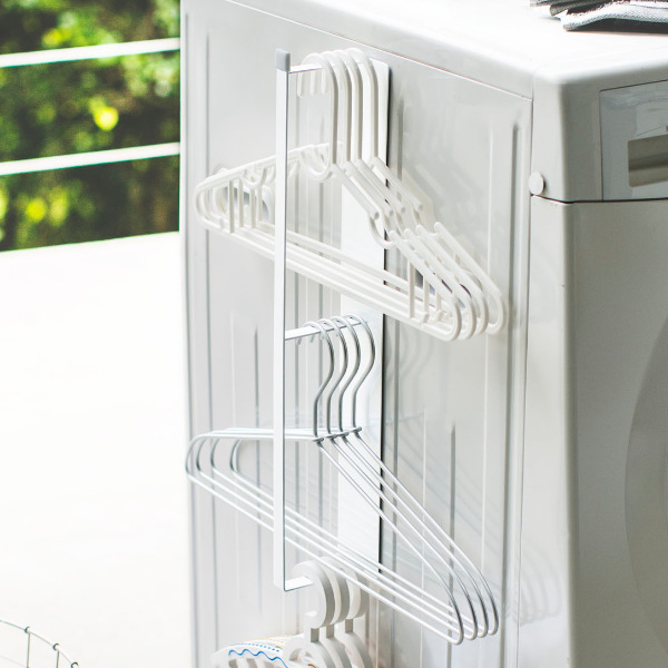 マグネットで洗濯機に簡単に取り付けができるハンガー収納ラックです。かさばる洗濯ハンガーをスリムに一括収納でき、洗濯物をその場でハンガーに掛けられるから洗濯動作がスムーズです。