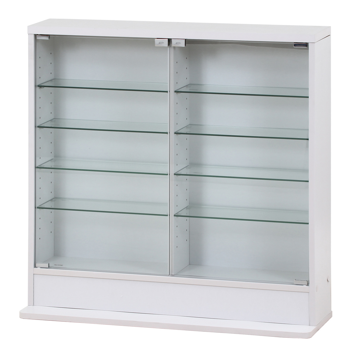 コレクションケース 幅90cm ロータイプ 浅型 ショーケース ガラス棚板 ( ディスプレイケース ガラス製 ガラスケース 収納 キャビネット ガラスキャビネット ディスプレイラック 飾り棚 ディスプレイ ガラス 魅せる収納 おしゃれ ) 【ホワイト】