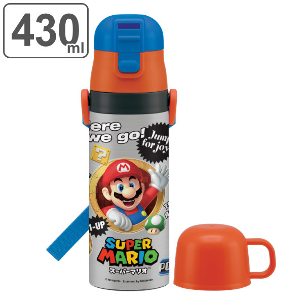 水筒 2way 直飲み コップ 超軽量 スーパーマリオブラザーズ 430ml ( マリオ ステンレスボトル 保温 保冷 軽量 子供 キャラクター キッズ コップ付き 直のみ ダイレクトボトル 子供用 幼稚園 保育園 )