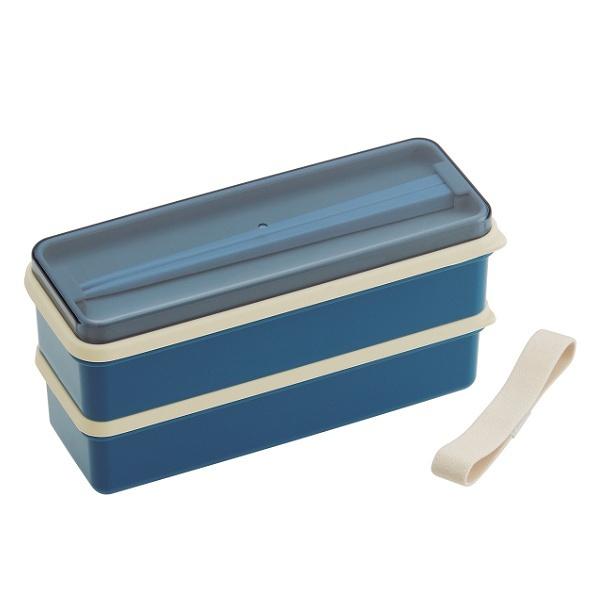 お弁当箱 2段 抗菌 630ml シリコンランチ レトロフレンチ ( 弁当箱 ランチボックス 食洗機対応 レンジ対応 二段 銀 AG シンプル 食洗機OK レンジOK 弁当 お弁当 箸付き 仕切り付き ランチベルト付き 入れ子式 ) 【ネイビー】