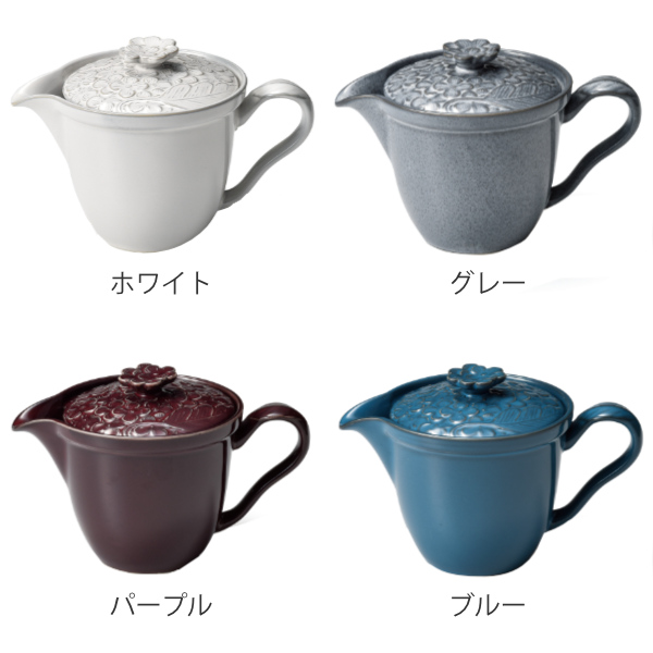 ポット 370ml リアン 食器 ティーポット 磁器 美濃焼 日本製 ( 食洗機対応 電子レンジ対応 紅茶ポット 急須 2杯 ティーサーバー 紅茶 お茶用品 茶器 おしゃれ かわいい 花柄 ) 【 グレー 】