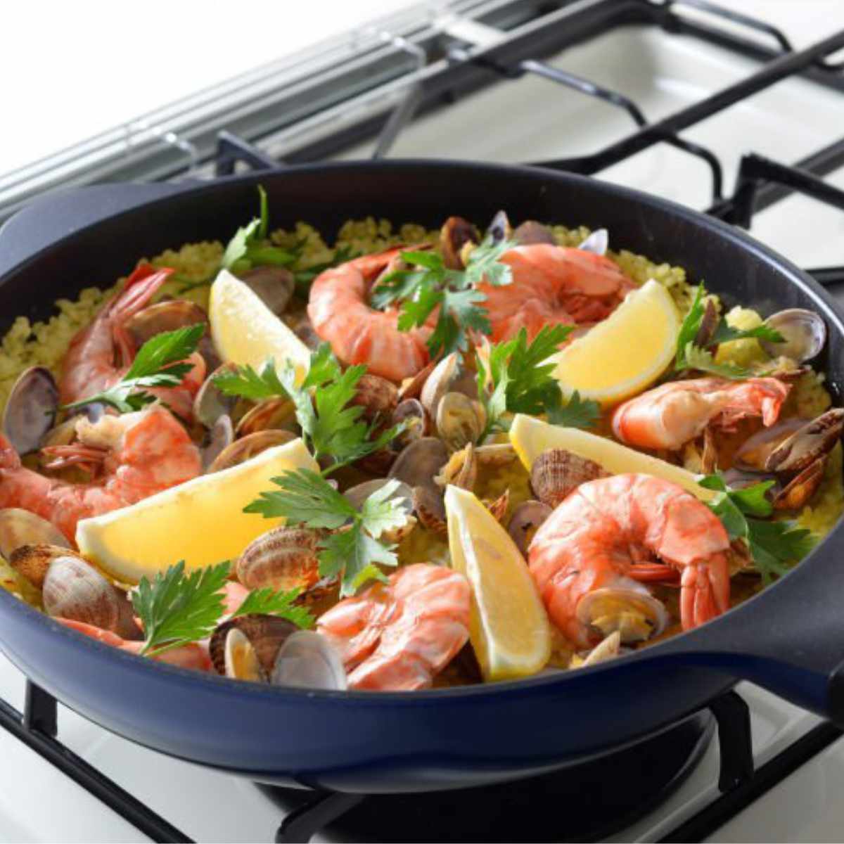 食材をムラなく均一に加熱することができるので、焼いて、煮て、炒めて、蒸して、と幅広い調理に対応できます。ハンバーグはふっくらジューシーに、火加減の難しい餃子はパリパリっときれいに焼けます。4人以上のご家庭向けのサイズです。