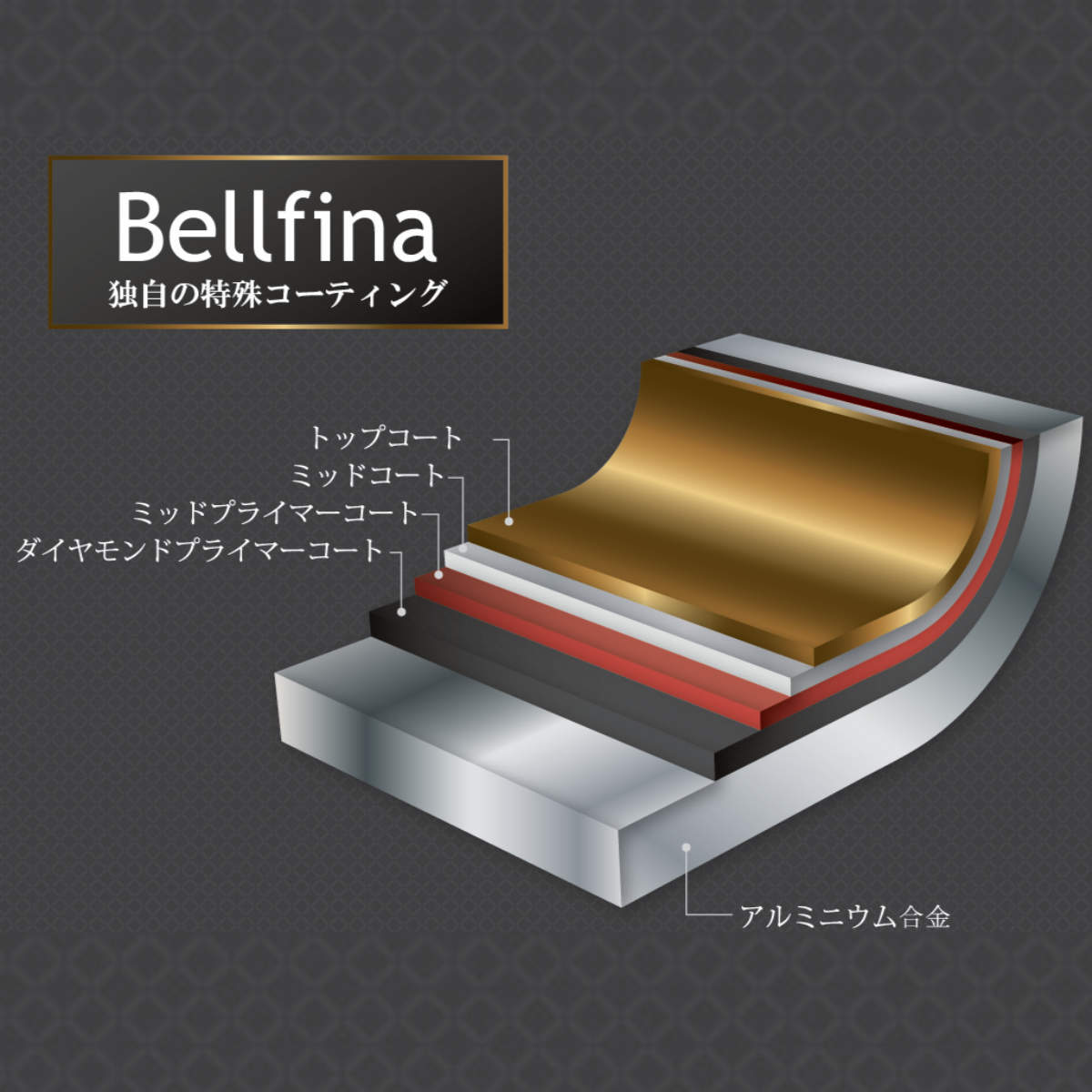 耐摩耗性100万回をクリアし、とても丈夫です。ベルフィーナ独自の特殊4層コーティングにより、焦げ付きにくく熱伝導も均一で、食材をムラなく加熱することができます。