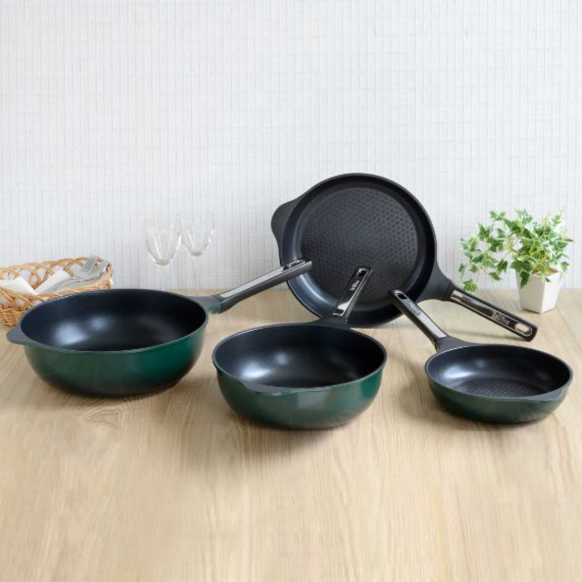 こちらのシリーズは落ち着いたグリーンカラーで、サイズ違いはもちろん、深さが浅いものなど、同じシリーズで幅広く揃っているので用途に合わせてお選びいただけます。