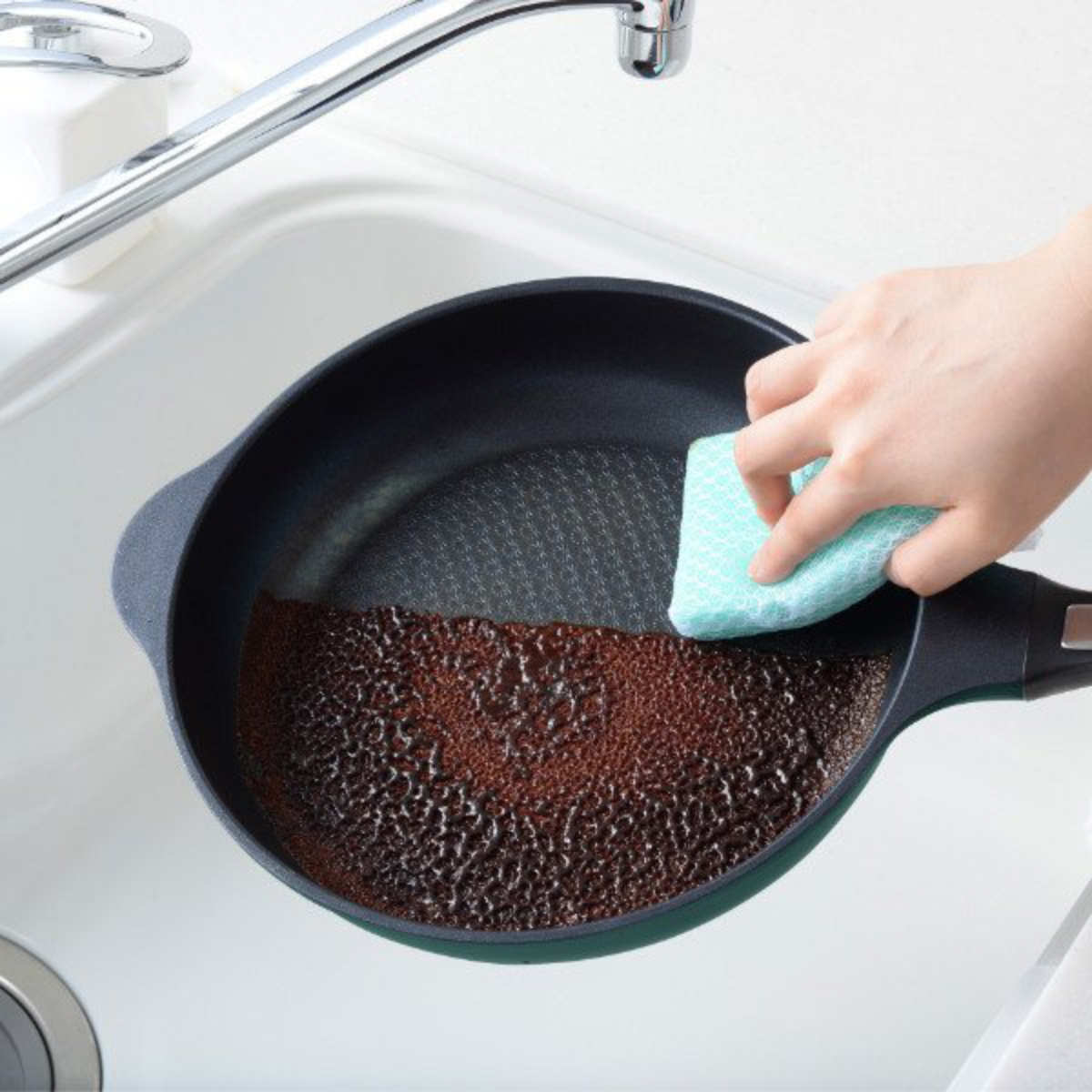 フラワーエンボス加工で焦げ付きにくく、お手入れもカンタン