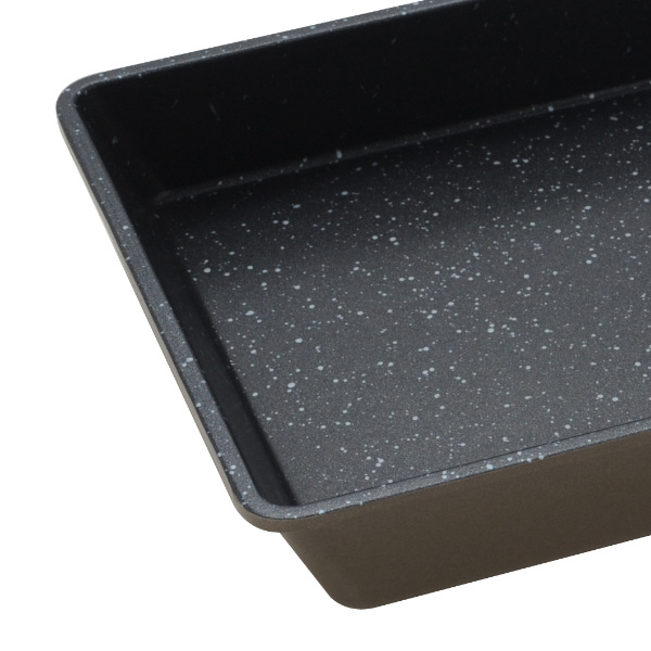 大理石のような4層マーブルコーティングで、内面はシルバーマーブルコーティングが施されており、焦げ付きにくくなっています。